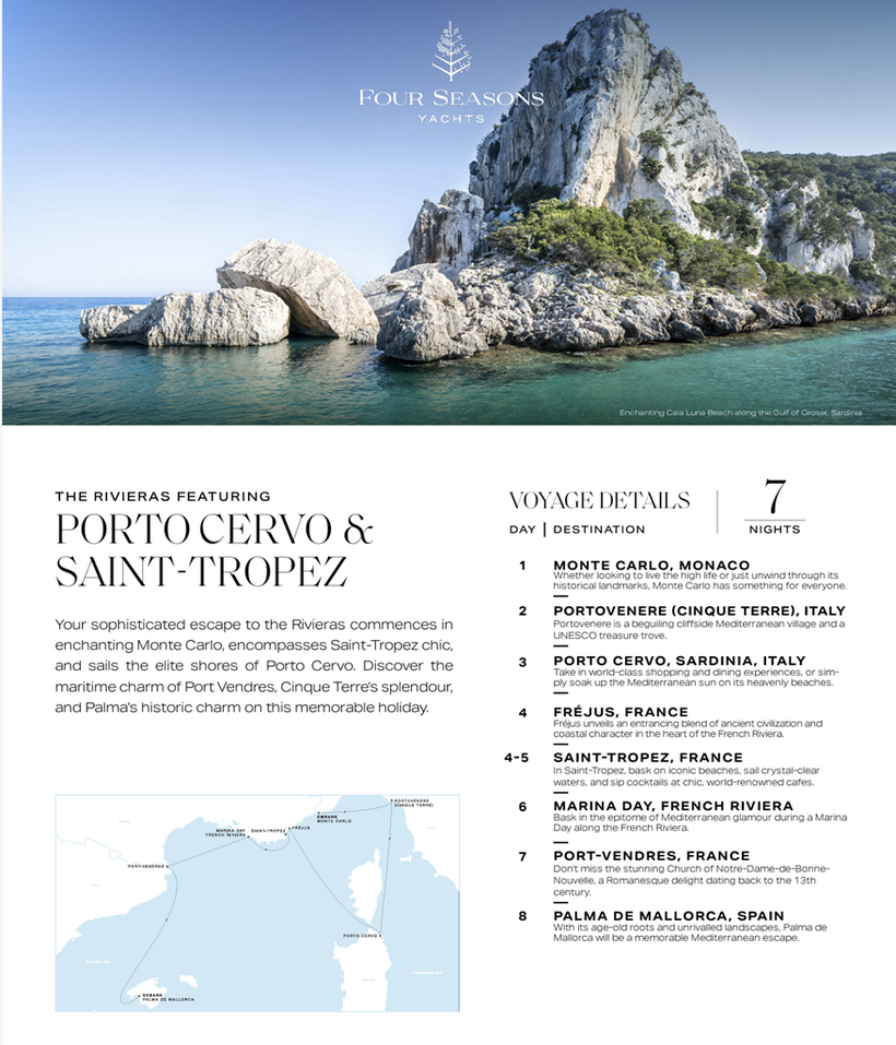 NEW: Four Seasons Yachts is available for any booking worldwide booking directly with Hotels & Resorts at Sea.